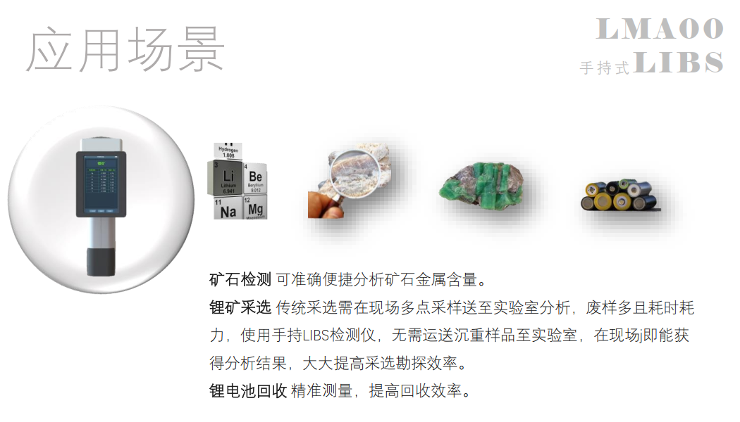 LIBS技术几乎可以用作所有固态样品的元素分析,由于其快速直接的分析方式、几乎无需样品制备等特点,非常适合用于实验室和各类复杂现场使用。