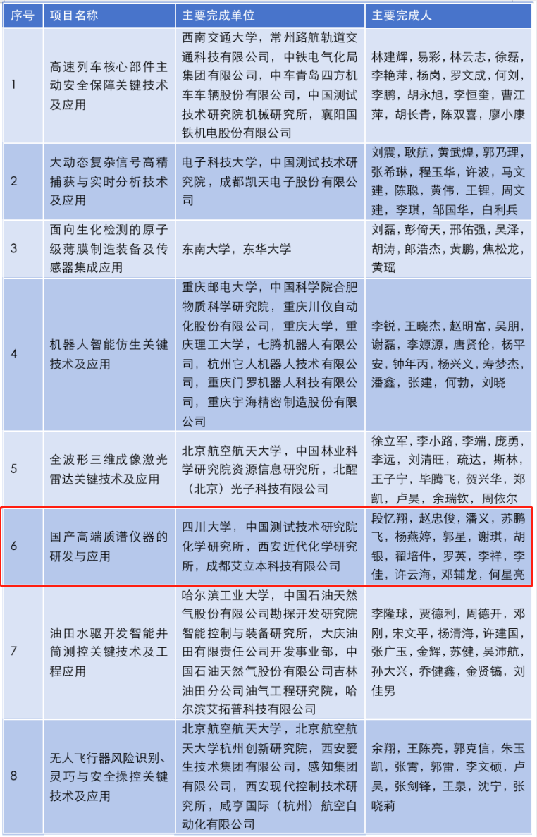 由四川大学、中国测试技术研究院化学研究所、西安近代化学研究所、成都艾立本科技有限公司共同开展完成的《国产高端质谱仪器的研发与应用》项目,获得了2023年科技进步一等奖。