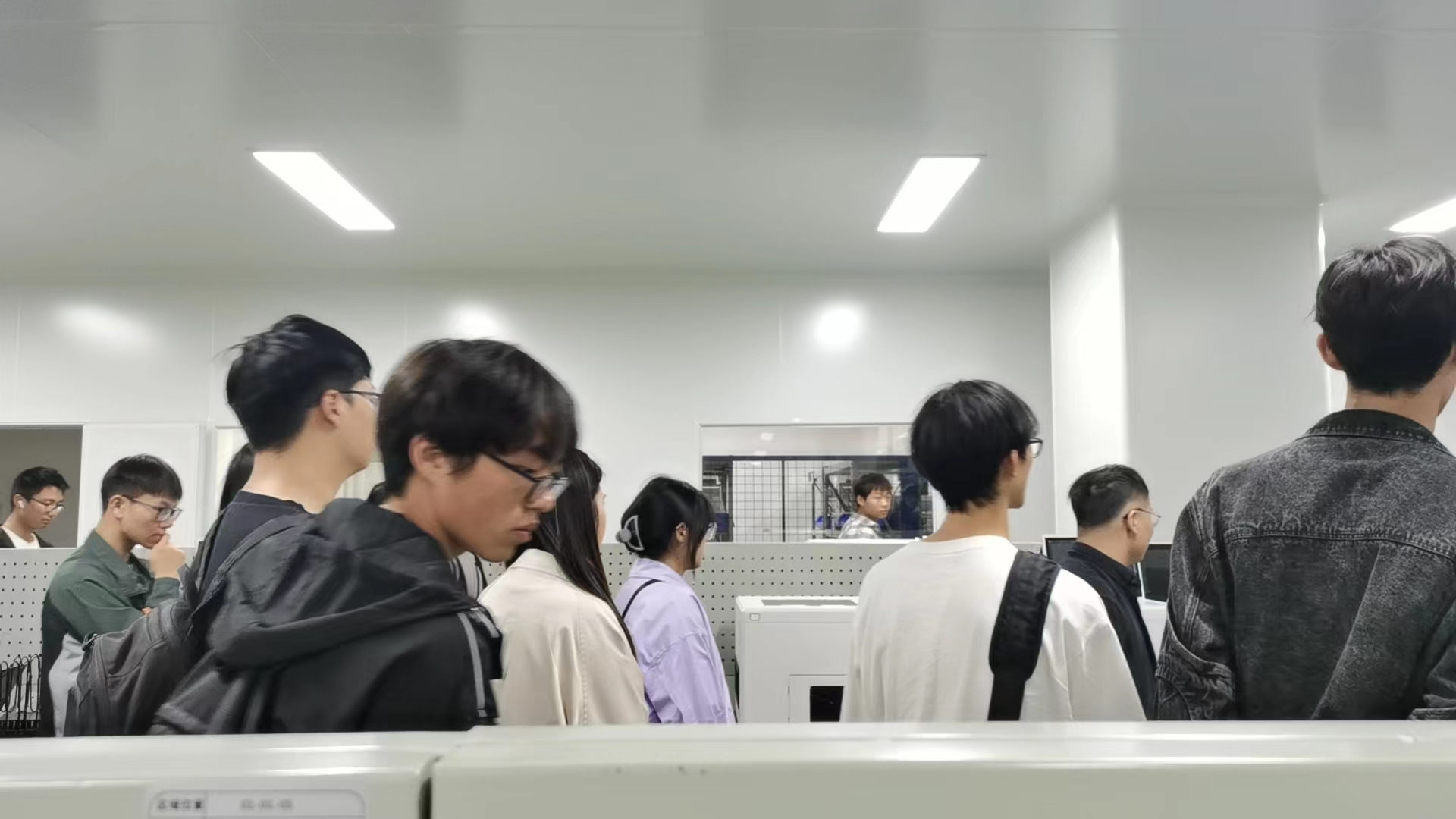 质谱部部长赵忠俊和总经办主任陈振东带领学生参观研发车间、生产车间、质检车间、仓储车间,讲述产品研发生产流程和设备工艺特点,深入工厂管理环节,让学生们直观感受企业运作。